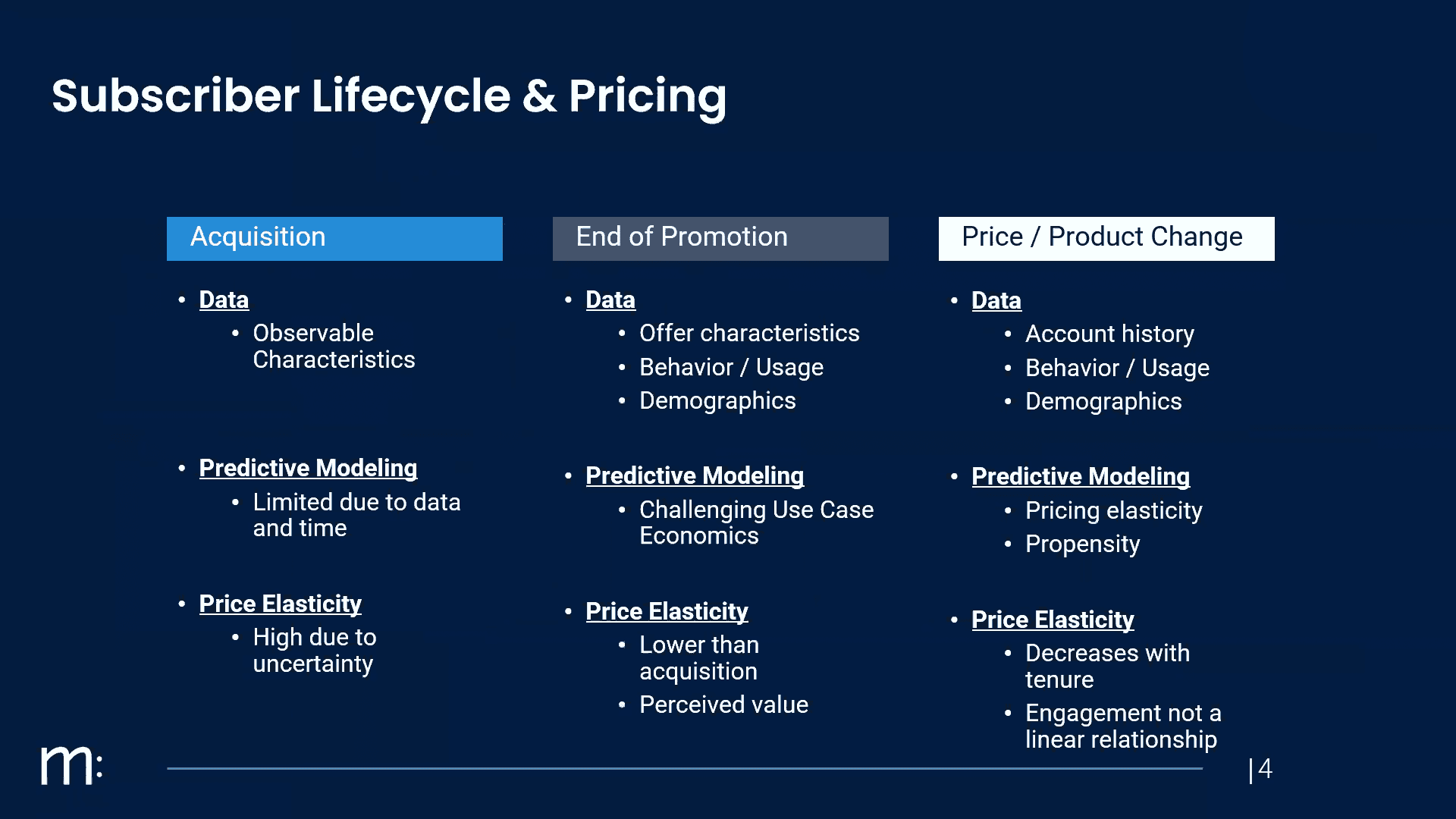 According to Lindsay, highly elastic customers–those more sensitive to price changes–tend to churn more when moving from promotional offers to regular rates. This group is most likely to respond positively to a reduced subscription pricing model, leading to a higher probability of securing their loyalty.