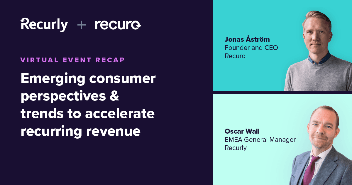 Oscar Wall, Recurly EMEA General Manager, and Jonas Åström, Recuro Founder and CEO, sat down to discuss the research insights from the State of Subscriptions: What consumers want report. They share surprising statistics on consumer behavior and expectations, real-life success stories, and proven best practices to enhance the subscriber experience.