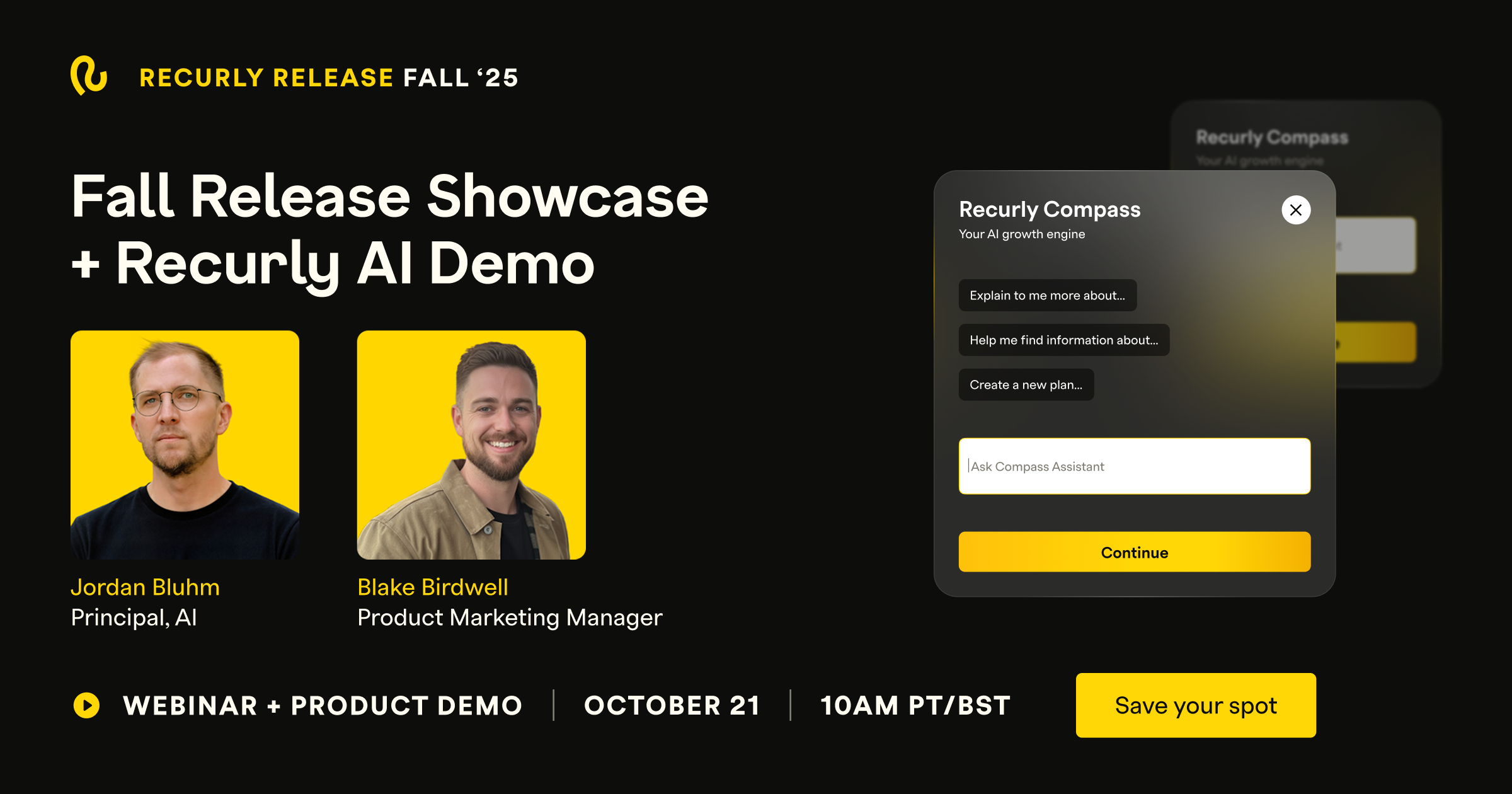 NEW WEBINAR: Fall Release Showcase + Recurly AI Demo