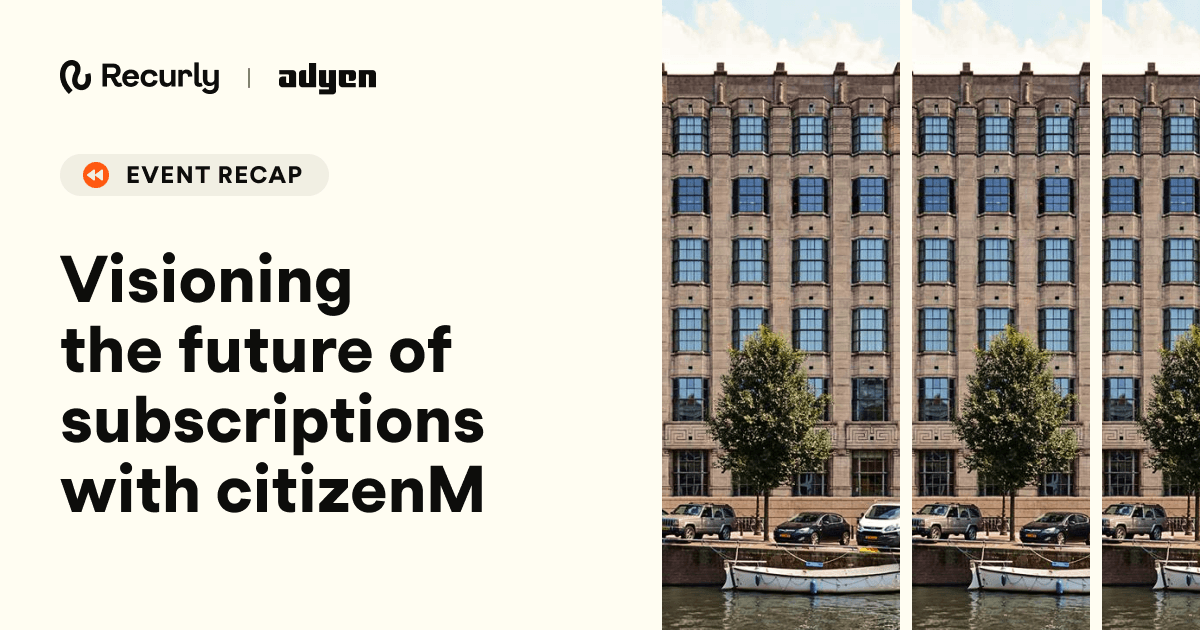 This evolution was the focus of Recurly’s in-person event in Amsterdam, The Future of Subscriptions with citizenM, hosted in partnership with Adyen. During the event, Joe Rohrlich, CEO of Recurly, Joost van Bommel, Head of Membership Products at citizenM, and Amber Bienfait, Commercial Strategy Lead, Digital, at Adyen explored the trends, challenges, and opportunities shaping the future of subscriptions.
