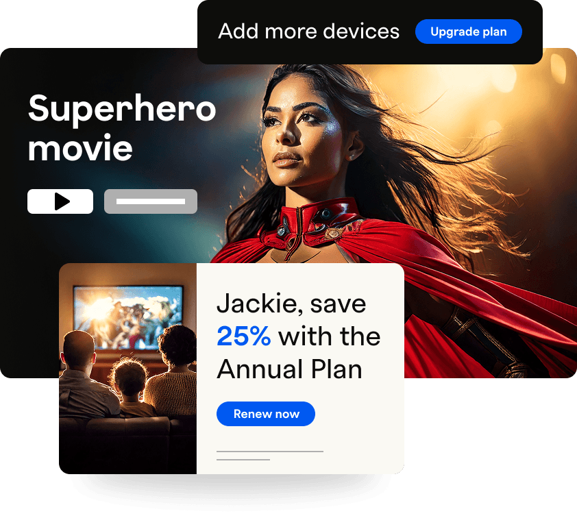 Reach subscribers when it matters most—while they’re active in your product. With Recurly Engage, you can design personalized in-app journeys and drive action without waiting for engineering resources.