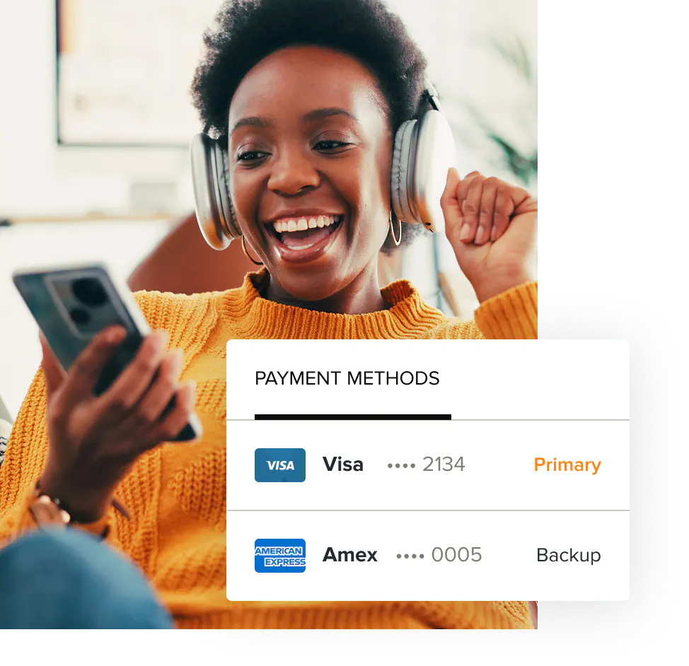 Allow subscribers to pay how they want—a single time or over time—by enabling them to assign different payment methods to each account, to each subscription on an account, or as a backup payment should the primary payment fail.