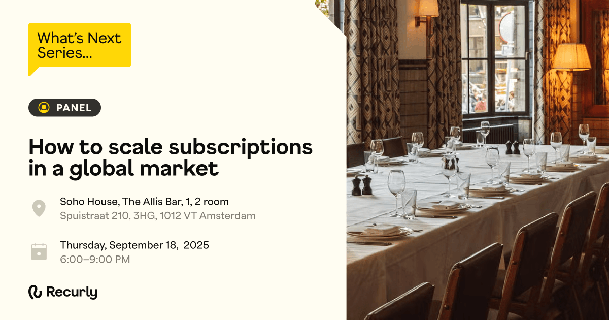 Expanding globally isn’t just flipping a switch, it’s about creating frictionless cross-border experiences. Join Recurly, Vertex & BeyondDutch alongside industry leaders for a panel on the real challenges, smart solutions, and bold moves driving sustainable international growth. Save your spot!
