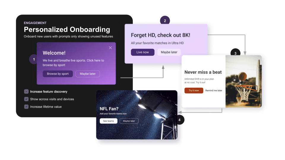 Advanced algorithms and machine learning can help provide these personalized suggestions, making customers feel valued and understood. For instance, if a subscriber is a sports fan, you could recommend additional NFL content as the next step in their journey.