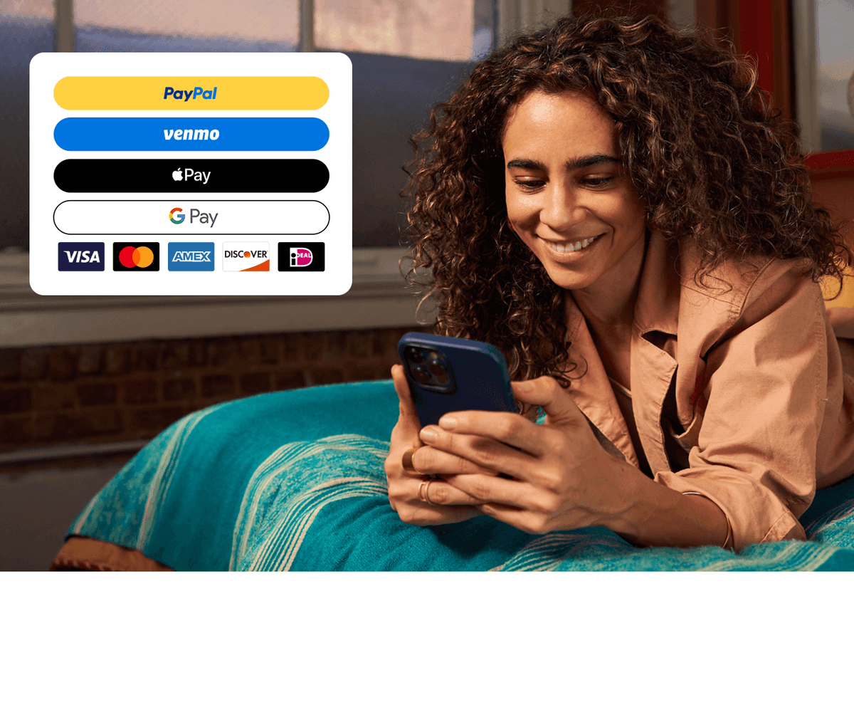 Maximize your conversion by offering PayPal, Venmo (US), card processing, Apple Pay, Google Pay and country-specific payment methods.